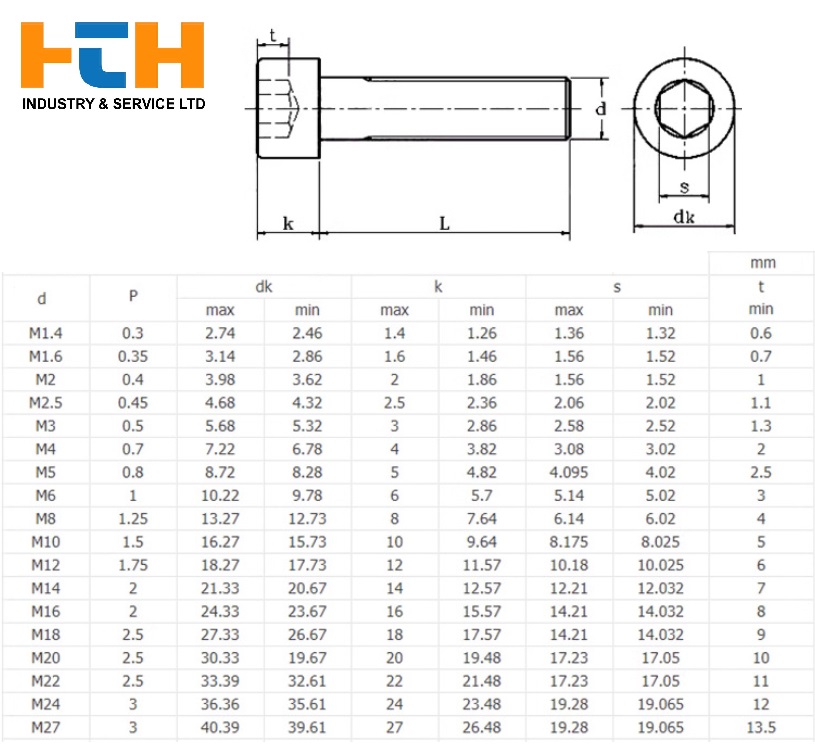 ✍ Những yếu cầu kỹ thuật cần có của Bu Lông Lục Giác Chìm M6
