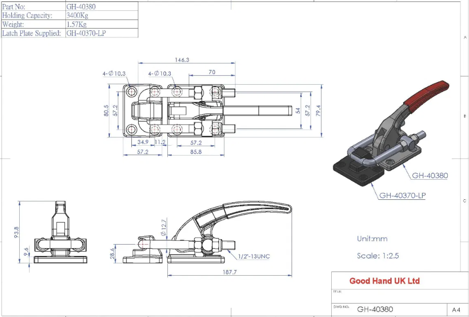 - Cam kẹp chốt GH-40380 được sử dụng rộng rãi trong các linh kiện điện tử, thông tin thiết bị sản xuất, ô tô, xe máy, xe đạp và tấm kim loại, sắt, hay nhóm ống nội thất khác.