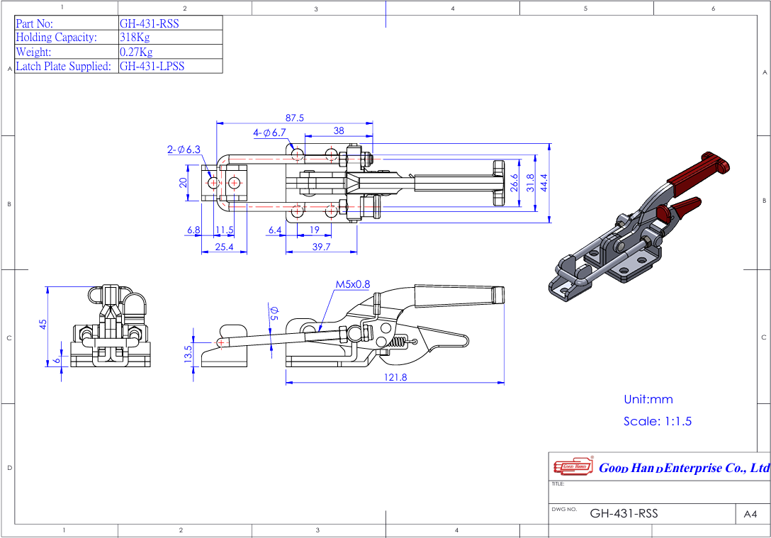 - Kẹp định vị GH-431-RSS là loại cam kẹp chốt