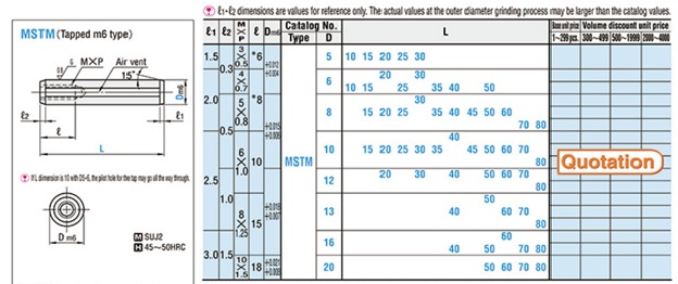 Thông số kỹ thuật chốt định vị có ren MSTM6