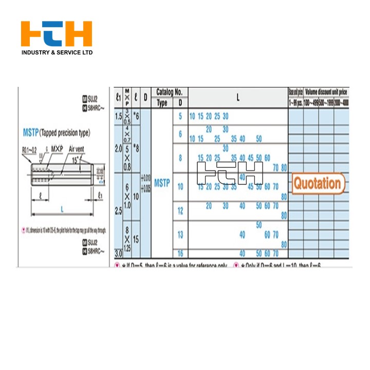 Chốt định vị là linh kiện khuôn mẫu được sử dụng trong khuôn đột dập để định vị chi tiết chính xác trong khuôn. Chốt định vị có ren MSTM8 là linh kiện khuôn mẫu loại một đầu có ren, một đầu trơn sử dụng để cố định các chi tiết khuôn, sản phẩm tấm lại với nhau.