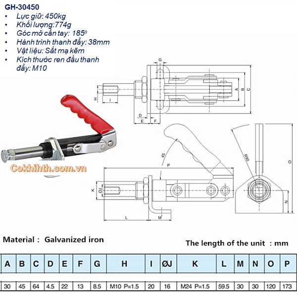 - Kẹp định vị GH-30450 là loại kẹp định vị đẩy ngang
