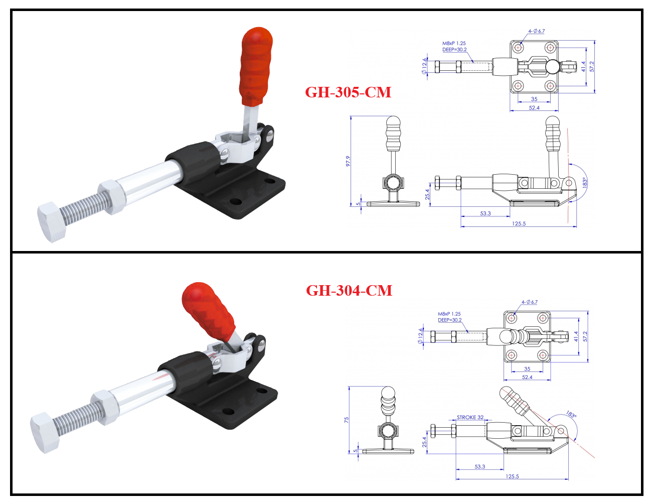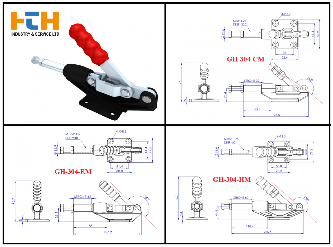 Cam kẹp GH-304-CM (Toggle Clamp GH-304-CM) là dòng kẹp định vị loại Đẩy/Kéo (Push/Pull Type), rất phổ biến trong gia công cơ khí chính xác và chế tạo đồ gá (Jig).