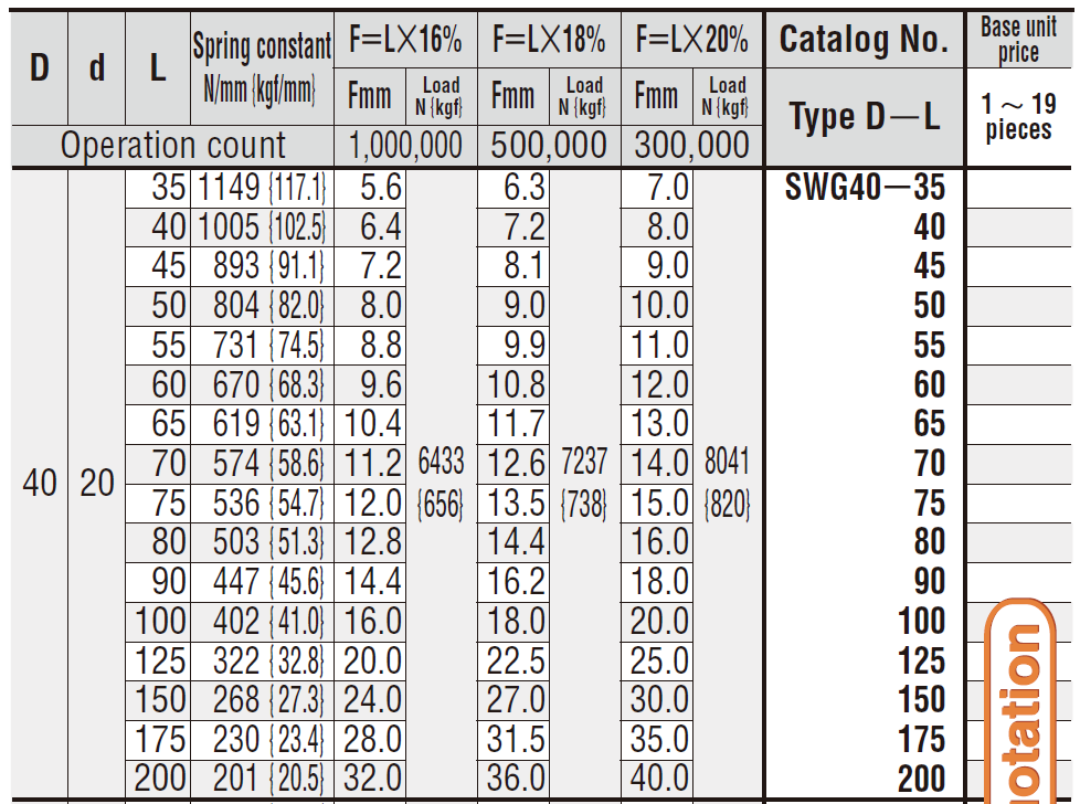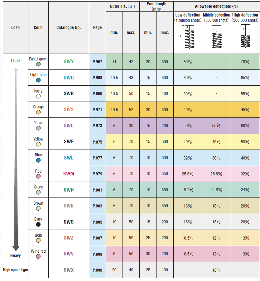 Lò xo đen SWG40 là Linh kiện khuôn mẫu được sử dụng trong công nghiệp , lắp ghép với chốt hồi trong khuôn ép nhựa hoặc sử dụng để đẩy trong khuôn dập, các thiết bị máy móc cơ khí.Dựa trên khả năng tải khác nhau, lò xo được đánh dấu bằng năm màu khác nhau để giúp phân biệt và chọn chúng dễ dàng hơn.