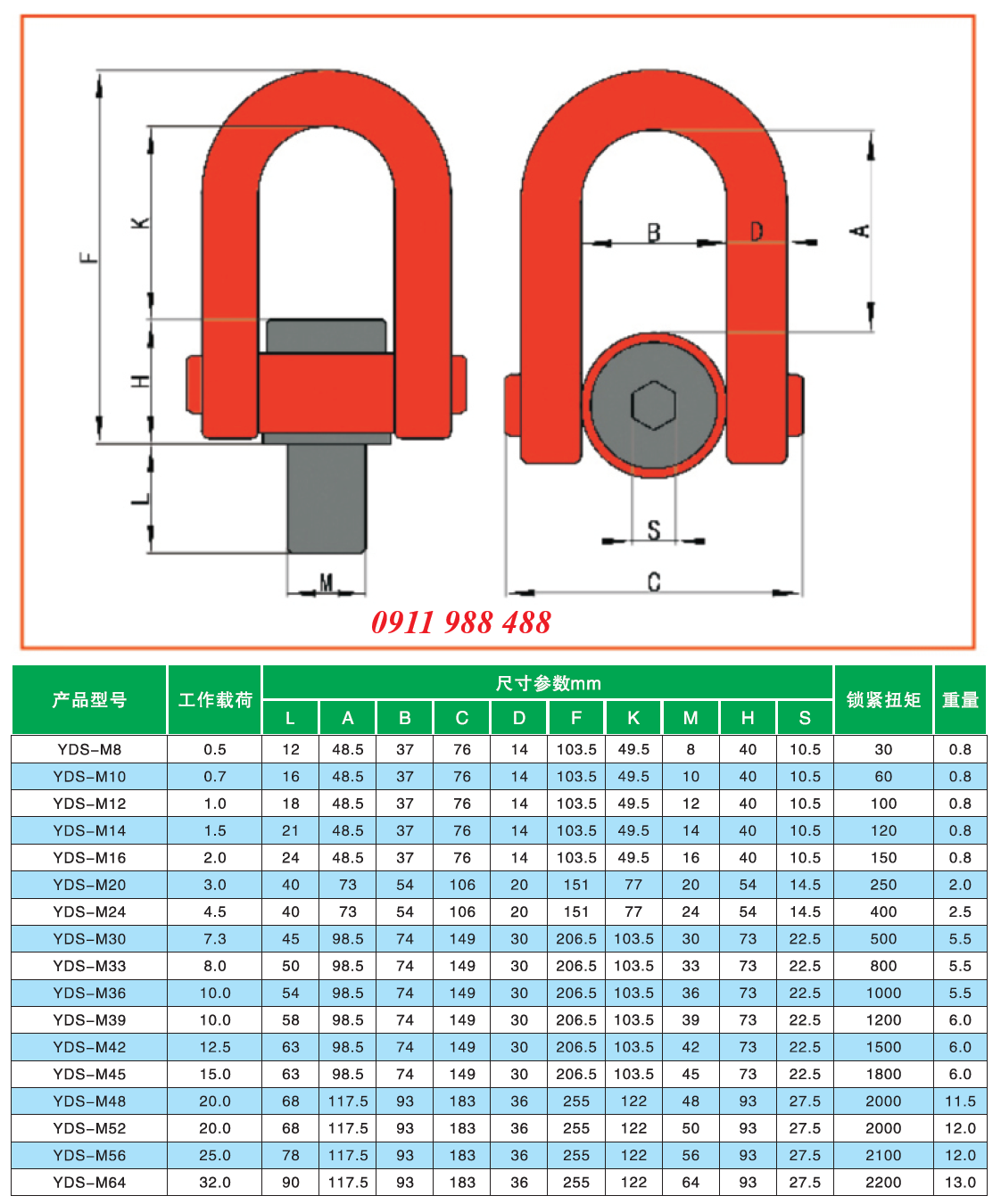 Móc kéo nâng xoay cường độ cao YDS (thường được gọi là móc cẩu xoay, tai cẩu xoay, hoặc YDS Swivel Hoist Ring) là thiết bị nâng hạ chuyên dụng, được thiết kế để khắc phục nhược điểm của các loại tai cẩu (eye bolt) cố định truyền thống.