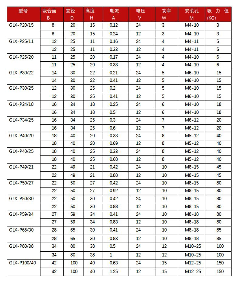Nam châm điện loại 24V có các kích thước, P20/15 2.5kg 24V,P20/15S 8kg 24V, P20/25 6kg 24V, P25/20 5kg 24V, P25/25 8kg 24V, P30/22 15kg 24V, P30/25 15kg 24V,P34/18 18kg 24V, P34/25 25kg 24V, P40/20 25kg 24V, P40/25 40kg 24V, P49/21 40kg 24V, P49/25 45kg 24V, p50/27 60kg 24V, .....