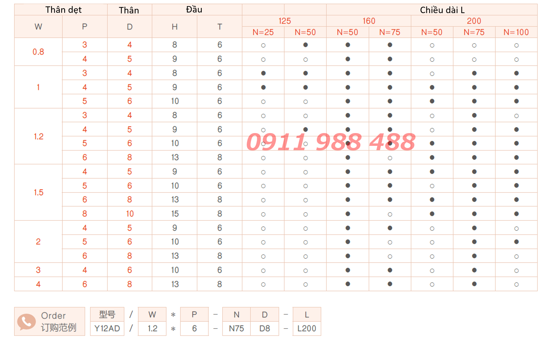 Pin đẩy dẹt tiêu chuẩn: là pin đẩy có kích thước và quy cách tiêu chuẩn theo bảng catalog dưới đây.