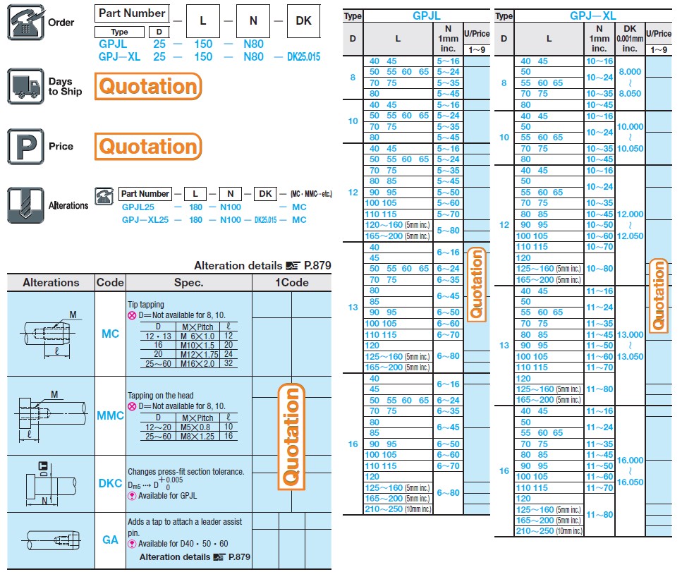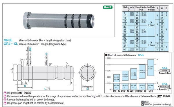 Trục dẫn hướng GPJL là linh kiện khuôn mẫu, sử dụng nhiều trong khuôn nhựa, khuôn ép nhựa, khuôn dột dập, khuôn đột lỗ... trục được thiết kế với thân trơn và thân tiện rãnh dầu...
