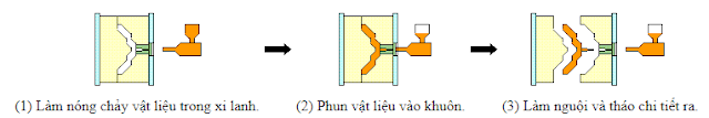 ●Đẩy nhựa nóng chảy "molten plastics" Từ xi lanh vào trong khuôn với áp lực cao.