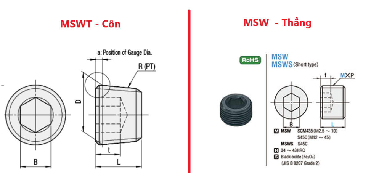 Vít trí MSW, M10, M12, M14, M16, M20, M30, M33, M22